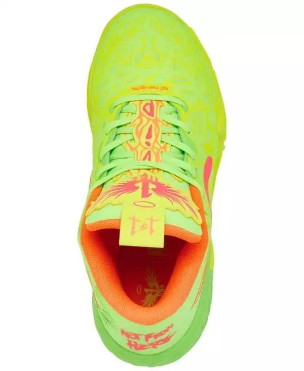 Bring out-of-this-world style to the court when you wear the Puma Big Kids LaMelo Ball MB.04 Basketball Sneakers. It has a double-layered mesh upper covered in a raised, multi-layered tentacle design.